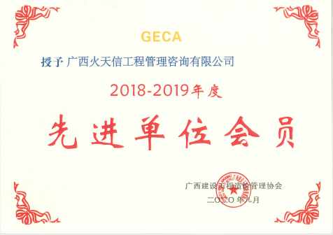 2018-2019 年度广西建设工程造价管理协会先进会员单位