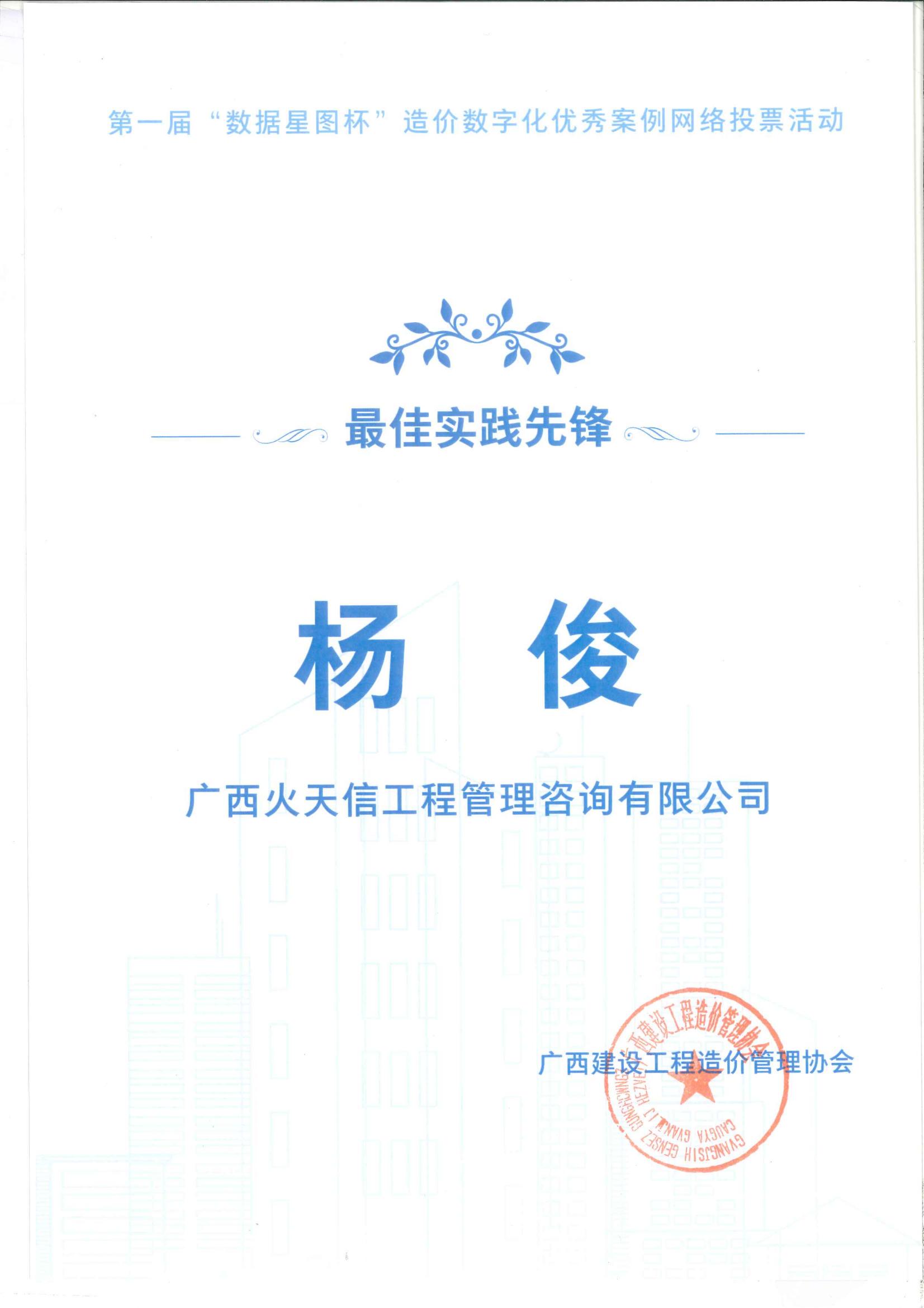 第一届“数字星图杯”造价数字化优秀案例网络投票活动最佳实践先锋