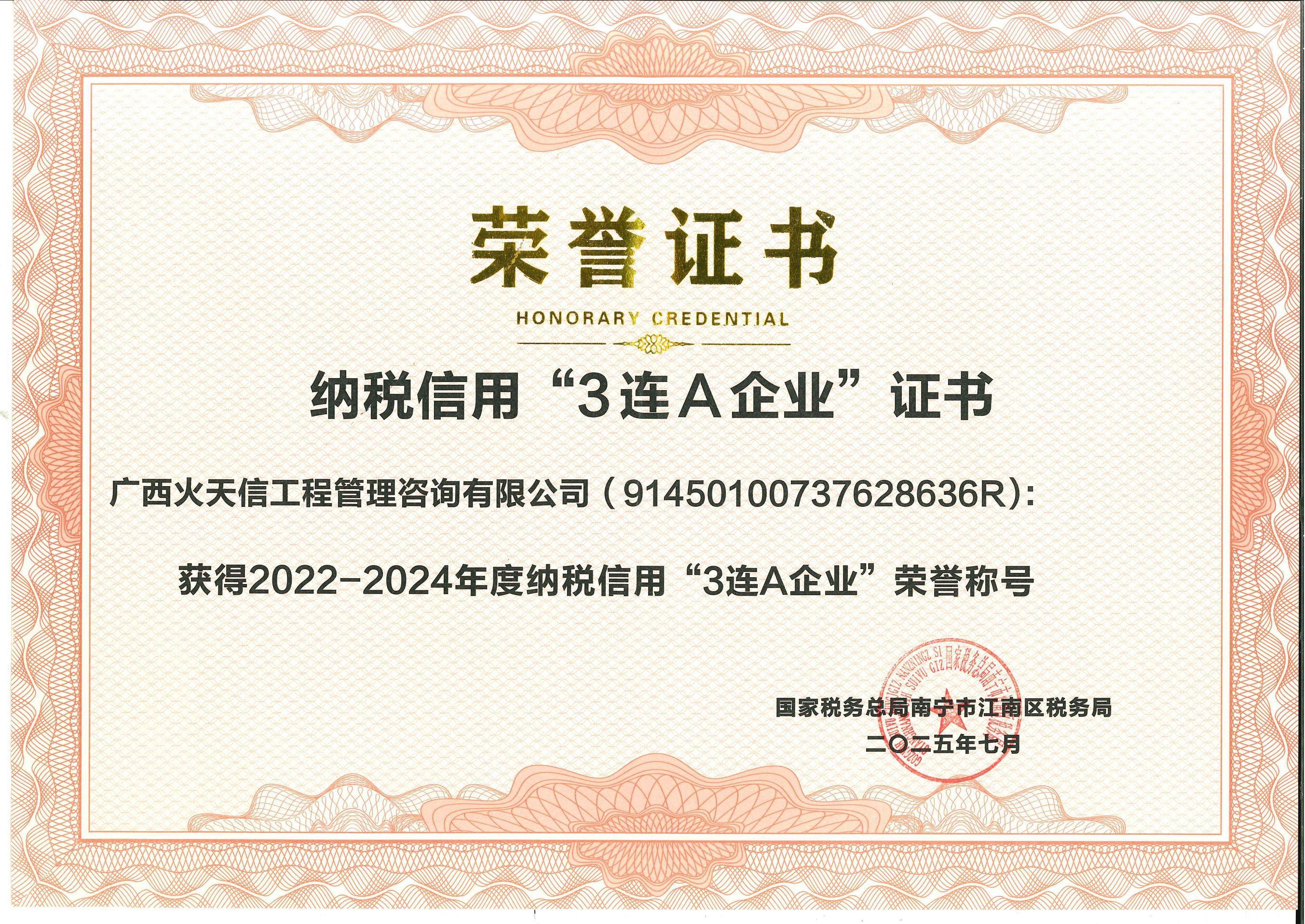 08/25【喜讯】热烈祝贺火天信投资集团旗下双企荣膺纳税信用殊荣,以诚建企铸造清廉典范