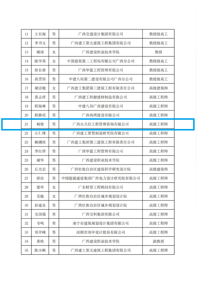 【公司荣誉】热烈祝贺火天信投资集团杨俊董事长当选广西工程建设标准化协会专家库第二批入库专家